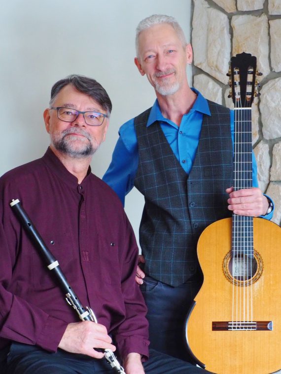 Two sets of instruments play music from two periods of music. This concert presents music of Robert de Visée, a lutenist in the court of Louis XIV, played by Tim Janz on one-keyed Baroque flute and Ralph Maier playing the theorbo, the long necked lute that was developed by the Florentine Camerata as a continuo instrument. In the late 18th century, the guitar had become very popular in the salons of Europe and was often paired with the transverse flute which now had developed to include a variety of extra keys. Filipo Gragnani wrote guitar and chamber music that was published in Milan around the turn of the 19th century. Come enjoy wooden flutes and plucked strings in music of two eras, sure to delight!